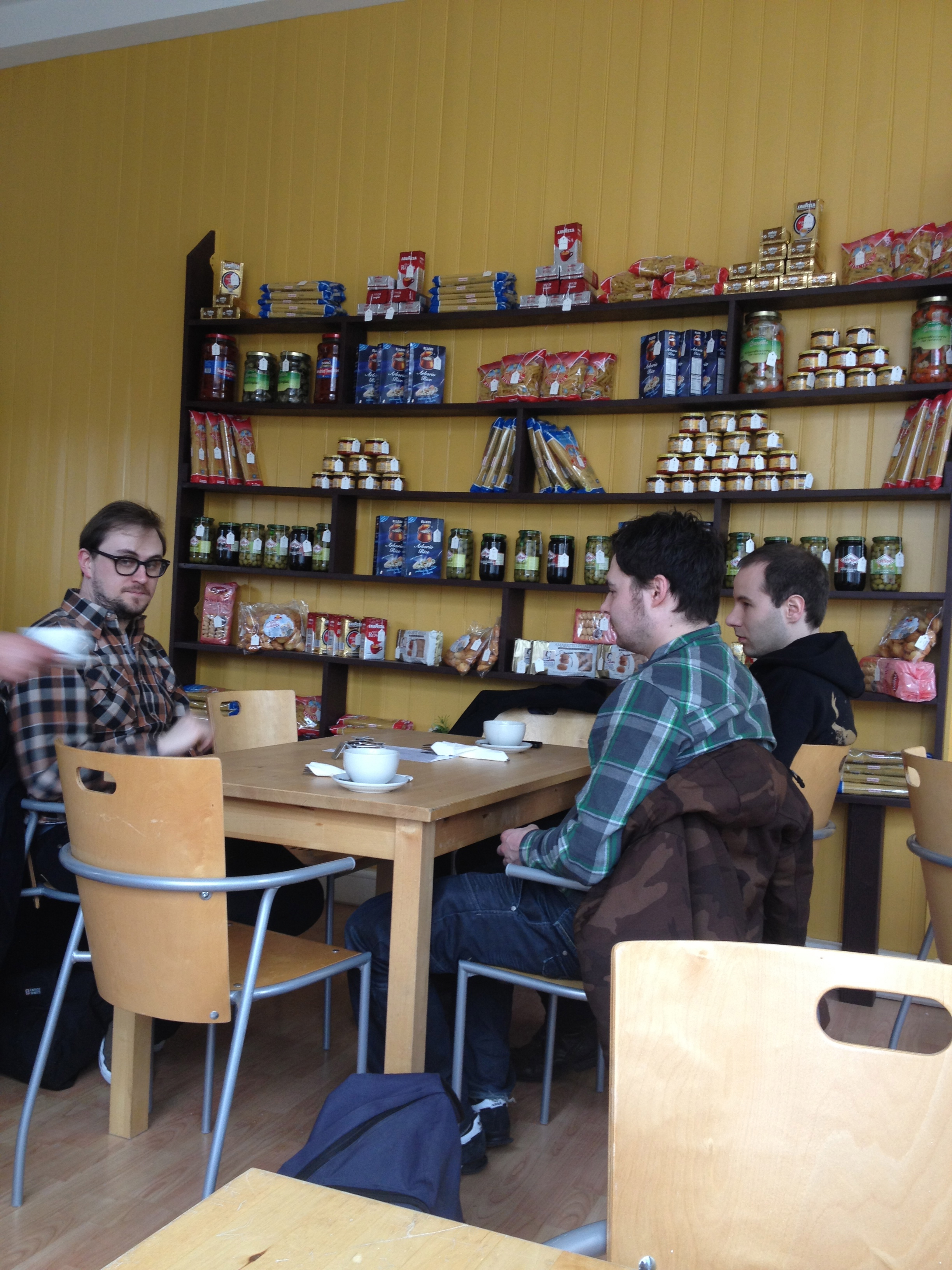 Marjorie’s Americano is a little weak, I was hoping that being Italian the coffee would be excellent but the fresh pizza more than makes up for it. My friends seem to pull off Luton’s answer to hipster-dom thing very well in their matching checked shirts.