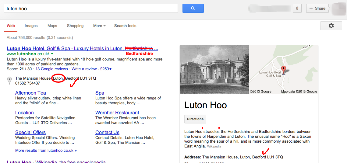 But start searching for Luton Hoo online, and you’ll see that the search-engine optimised first hit links to the official website of Luton Hoo Hotel, Golf & Spa, which claims to be intriguingly located in ‘Luton, Hertfordshire’.