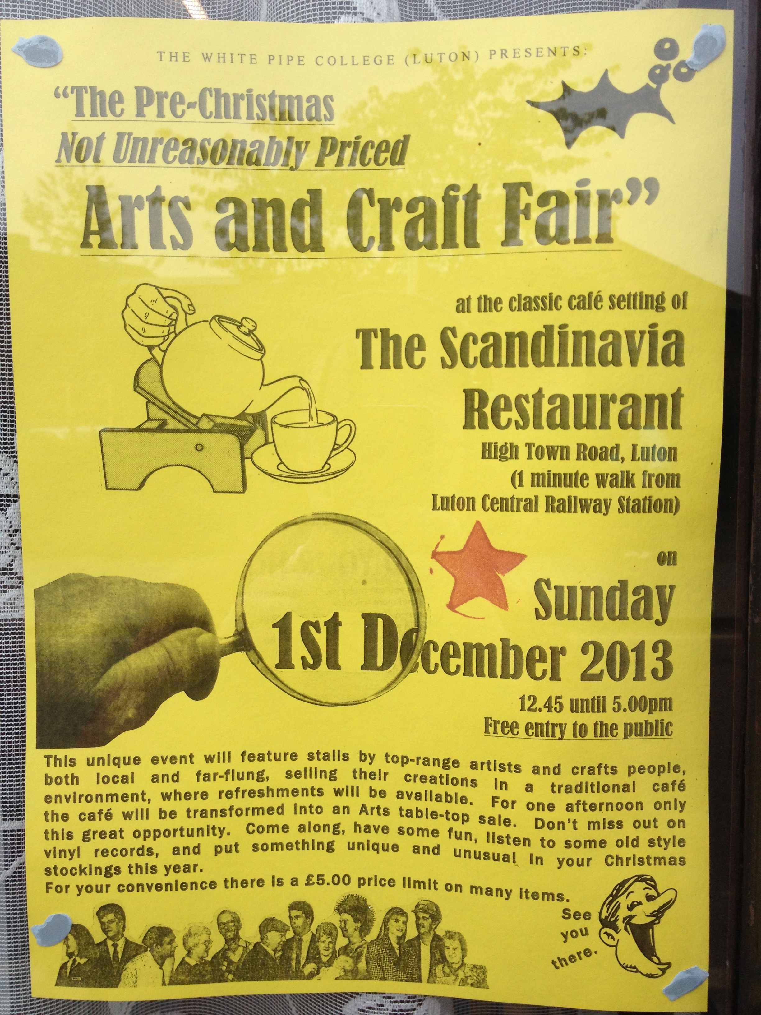 Arts and crafts Fair Published 2 December, 2013 at 2448 × 3264 in Yoga World & Pesto: The Pre-Christmas Not Unreasonably Priced Yoga News Special Mo’ arch than yo’ mamma: this year’s flyer for the Pre-Christmas Not Unreasonably Priced Arts and Crafts Fair.