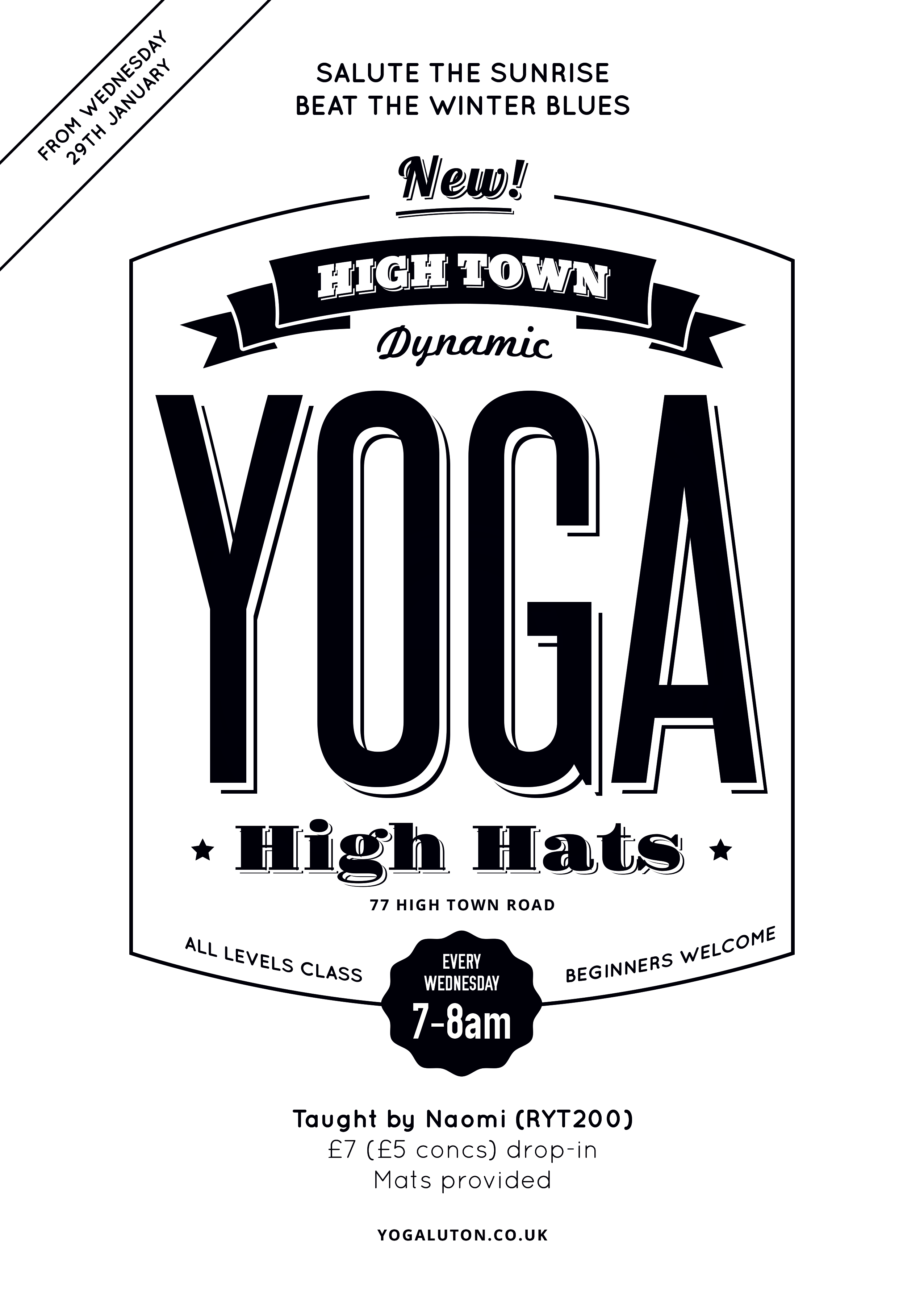 Starting 29 January 2014, join me for my NEW early morning class on Wednesday mornings, 7-8am, at High Hats, 77 High Town Road.